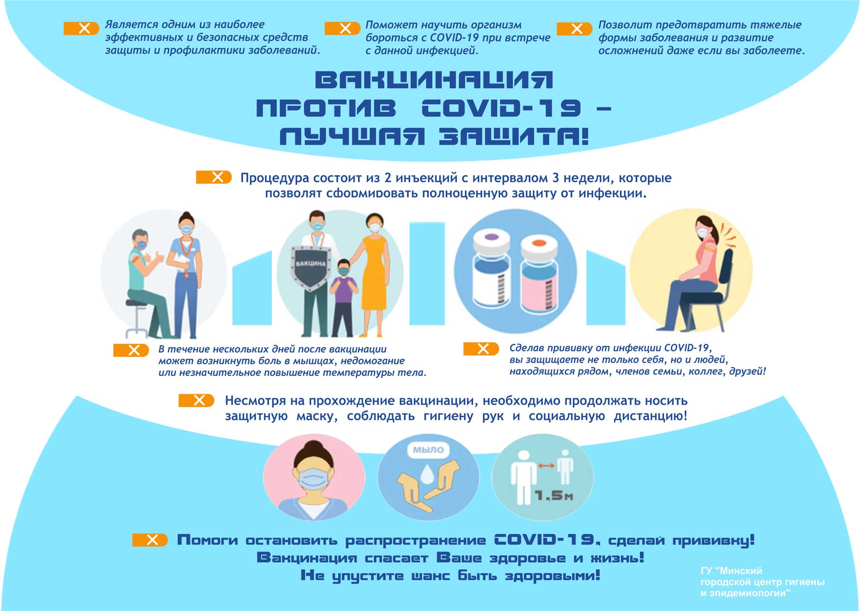 В течение 30 мин после вакцинации просим вас оставаться около мобильной бригады для предупреждения возможных аллергических реакций и поствакцинальных осложнениях.